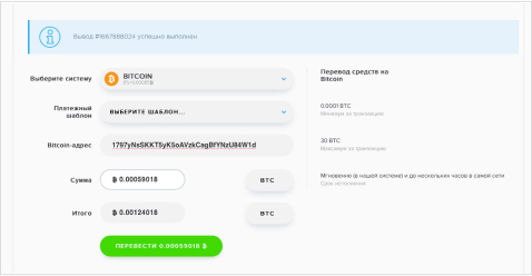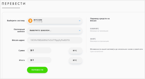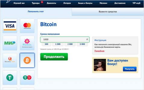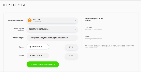 Пополнения счета через Bitcoin