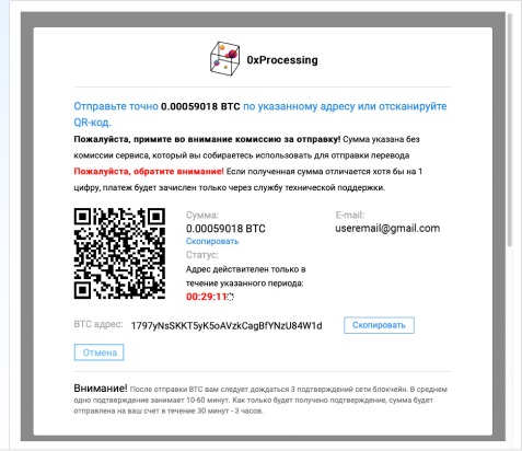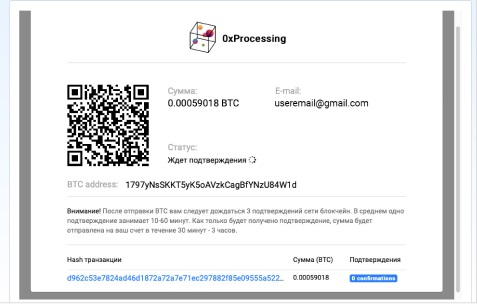 Выбираем метод Bitcoin на нашем сайте - вводим сумму - нажимаем «Продолжить» (Оплатить): - 12. Вы будете направлены на страницу платежной системы с информацией: адрес кошелька, на который необходимо сделать перевод, и сумма перевода: