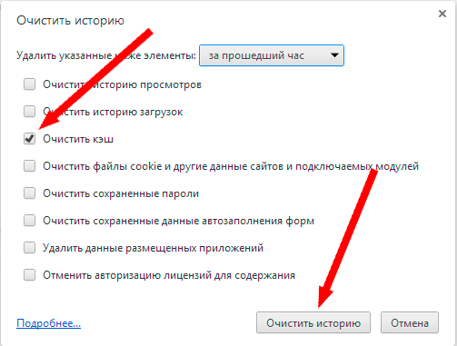 Для того, чтобы быстро стереть кэш нажмите сочетание клавиш Ctrl+Shift+Delete и в окне браузера Google Chrome «Очистить историю» поставьте галочку напротив «Очистить кэш». Выберите из списка «Удалить указанные ниже элементы» — «За все время» и нажмите кнопку «Очистить историю».